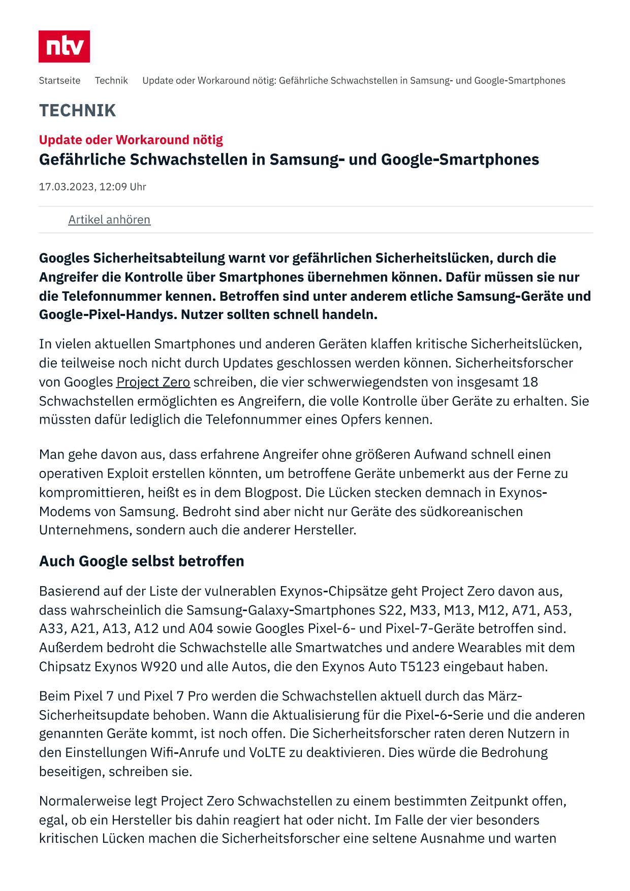 - Gefährliche Schwachstellen in Samsung- und Google-Smartphones