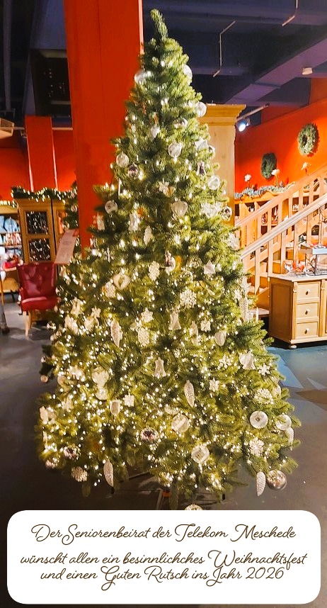 Wir als Seniorenbeirat der Telekom Meschede wünschen Ihnen und ihren Familien ein besinnliches Weihnachtsfest und einen Guten Rutsch ins Jahr 2026.